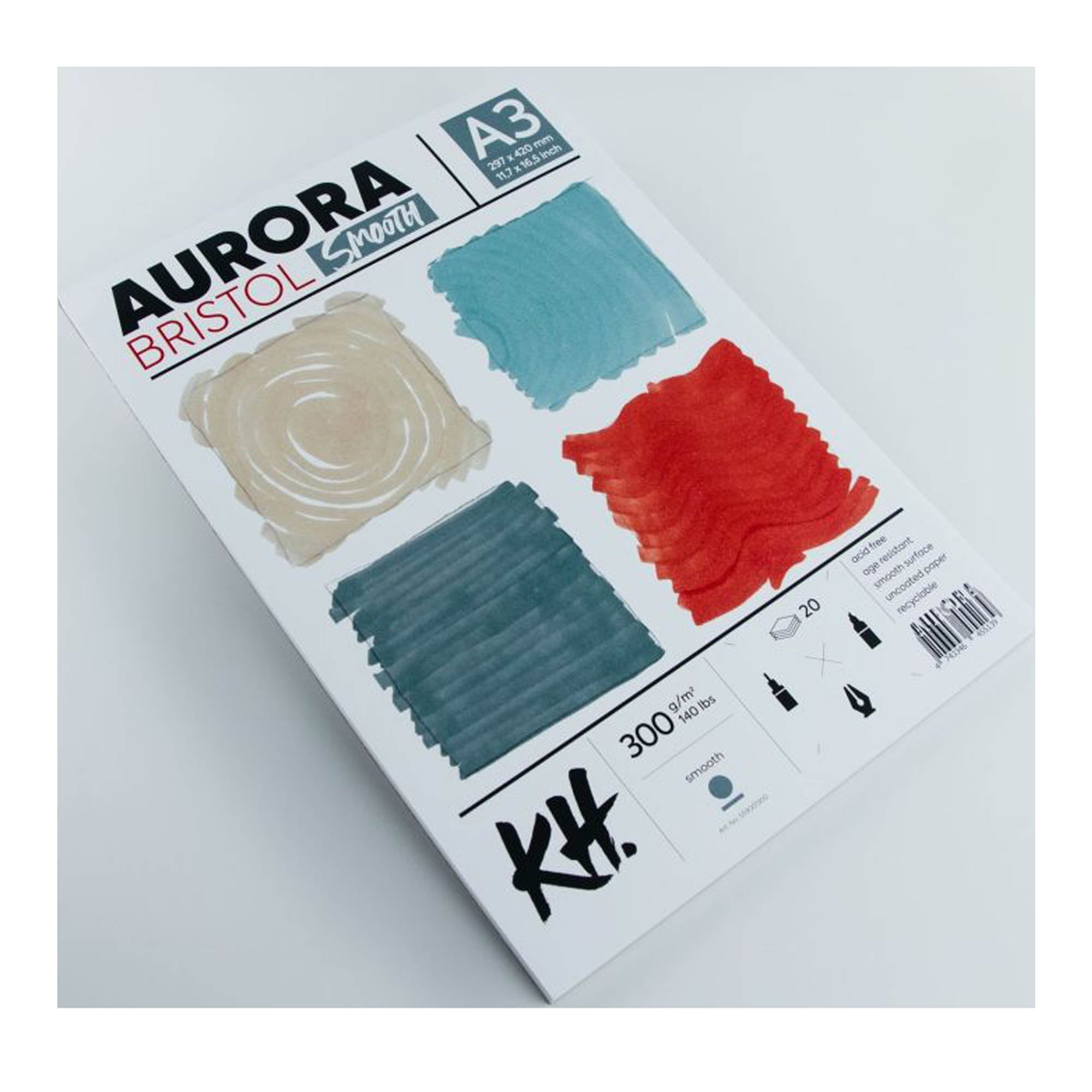 AURORA "BRISTOL Smooth" skicēšanas, rasēšanas albums. Papīrs ir balināts balts ar ļoti gludu tekstūru (kā rasēšanas papīrs).