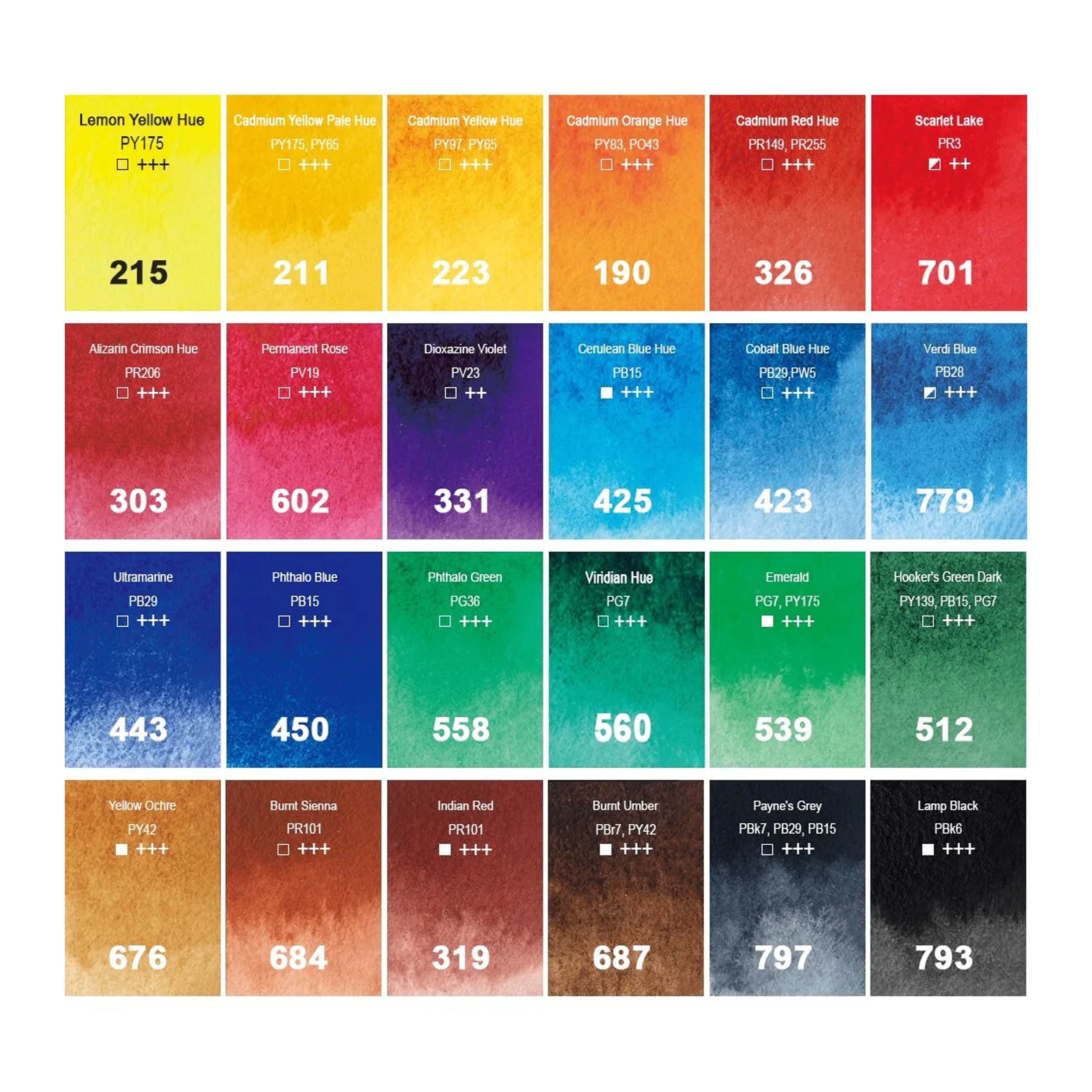 Labas kvalitātes akvareļu krāsas, piemērotas gan māksliniekiem, gan studentiem. Izgatavotas no labas kvalitātes pigmentiem.