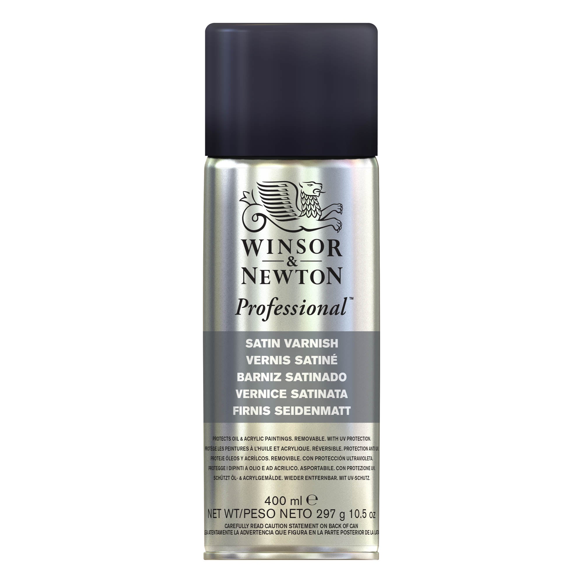 Satīna aerosola nobeiguma laka eļļas un akrila darbiem Aizsargā no putekļiem un mitruma. Ar UV aizsardzību. Noņemams ar minerālspirtu vai terpentīnu. Lietot ārā vai labi vēdināmā vietā temperatūrā, kas ir augstāka par 5 C. Pirms lietošanas aerosolu kārtīgi sakratiet un turiet apmēram 30 cm no virsmas. Kad esat pabeidzis, turiet aerosolu otrādi un izsmidziniet dažas sekundes, lai novērstu aizsērēšanu.