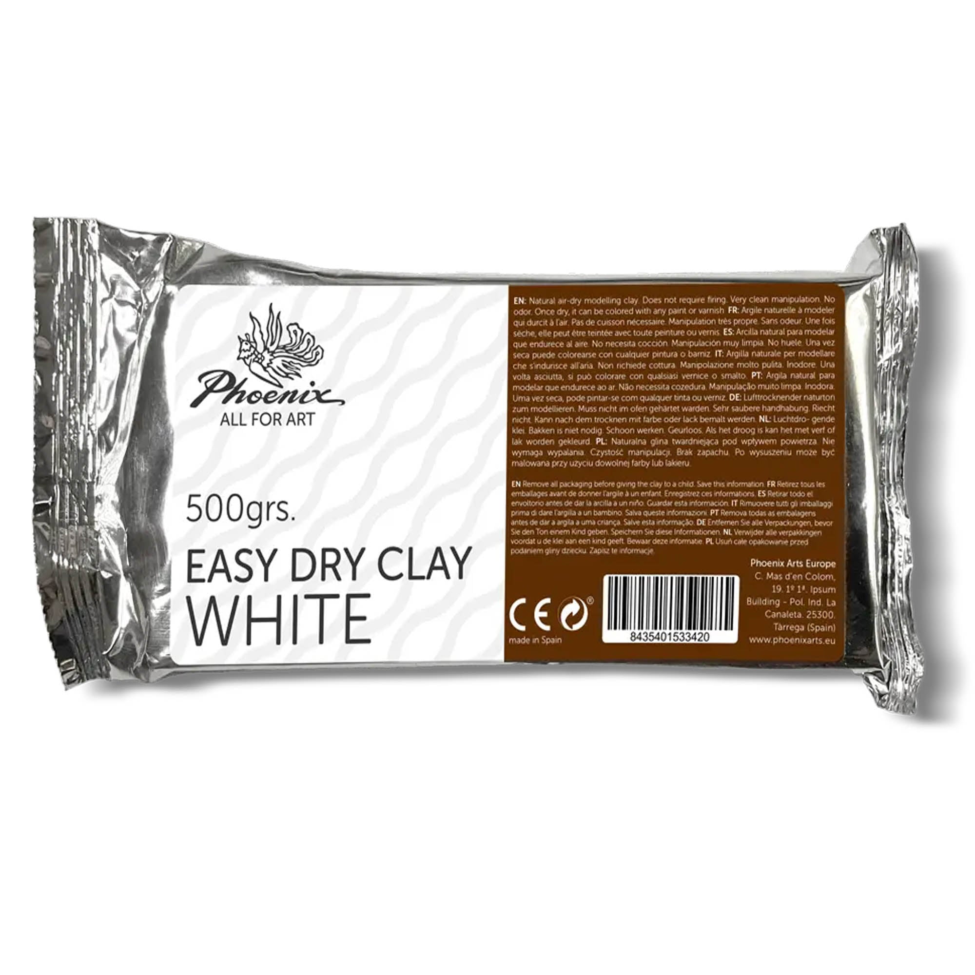 Phoenix EASY DRY CLAY/White. Pašcietējoša masa modelēšanai, dabīga, sacietē gaisā bez apdedzināšanas. Ieteicams profesionālai radošajai mākslai kā arī bērniem (4+).